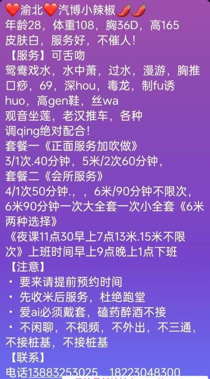 先说说个人体验,进门就眼前一亮,老师穿了一件白色裙子,美背一览无遗,还有那双大长腿搭配着高跟鞋,直接把我迷得不要不要的,二弟一下子就抬起头了,老师的挑逗让人直呼受不,直接上前把老师抱住,然后就随老师去鸳鸯浴了,老师在鸳鸯浴的时候也是非常调皮,二弟直呼受不了,清洗过程也是十分仔细,水中萧完还会调皮的猛吸一下二弟的头,还好二弟也是坚挺,不然这一下就给老师了,洗完老师会帮擦背,然后躺在床上,让老师换上黑丝高跟和性感的情趣内衣享受老师的服务,老师的口技十分了得,一点齿感都没有,深喉的时候十分刺激,定力稍差都会被老师吸的出水,还有镜前吹箫,可以充分的在镜子面前看到老师那诱惑力拉满的色色感,十分刺激,然后还有海底捞月这招,直接抬臀让老师在胯下口,那个感觉简直不要不要的,老师口技太好了,还没有享用老师的妹妹可不能这么快缴械了,但是老师的口技太好了,直接把我给吸出来了,完事之后老师还会帮你清理干净,服务十分周到。最后总结,老师还是一位非常健谈的人无论是在情绪上还是服务上都非常好,而且还不会催钟,喜欢少妇和美腿的朋友可以直接冲。本人有时间的话是会去反食的,这么优质的老师可不多见。最后配上老师的美腿美背图片和一张老师的与你上的照片。